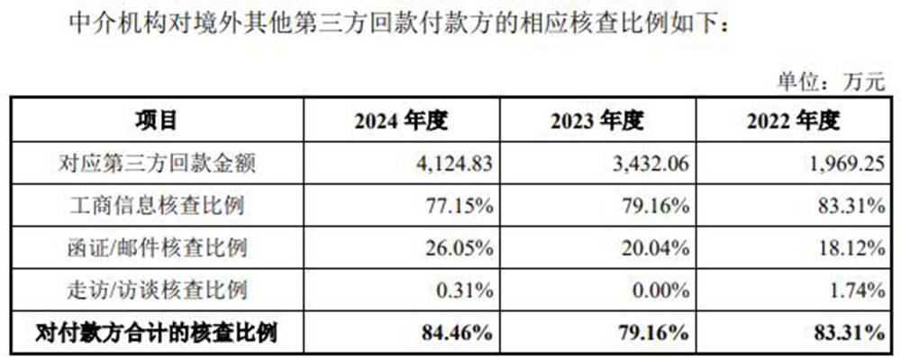 尤需注意的是,在中介机构对境外第三方回款的核查中,走访/访谈的比例仅为0.31%,大多数仅进行了工商信息的核查。
